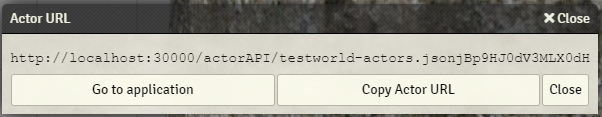 If you click on the [ Go to Application ] button it opens the character sheet in a new window. This url to your character should work as long as the Foundry server is online. No matter what world it is on (as long as the world has ran with this plugin at least once.)