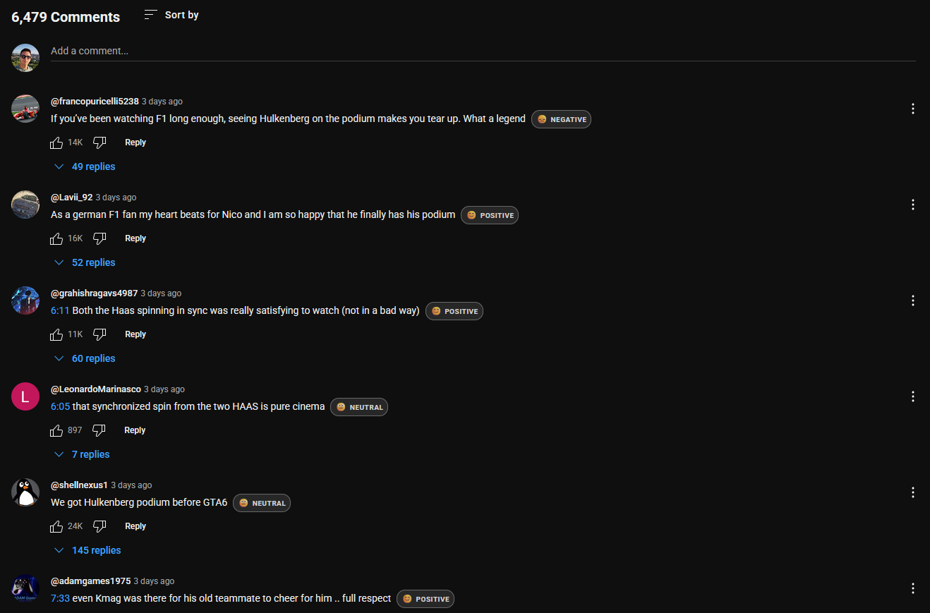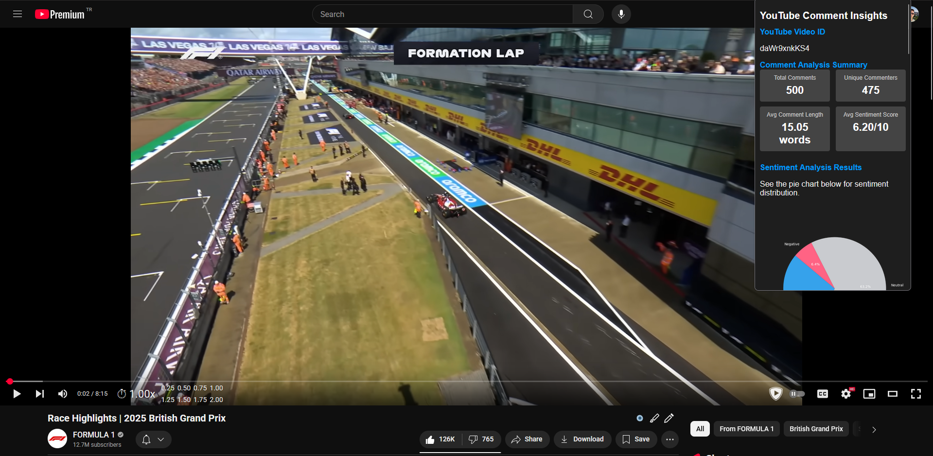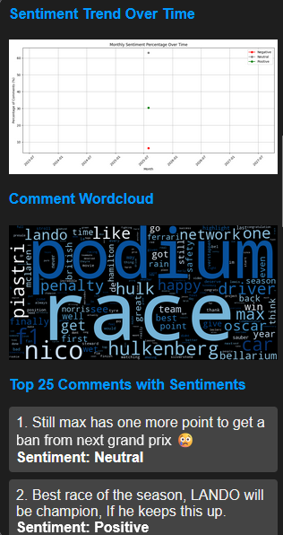 - Sentiment Analysis: Classifies YouTube comments into positive, negative, or neutral sentiments