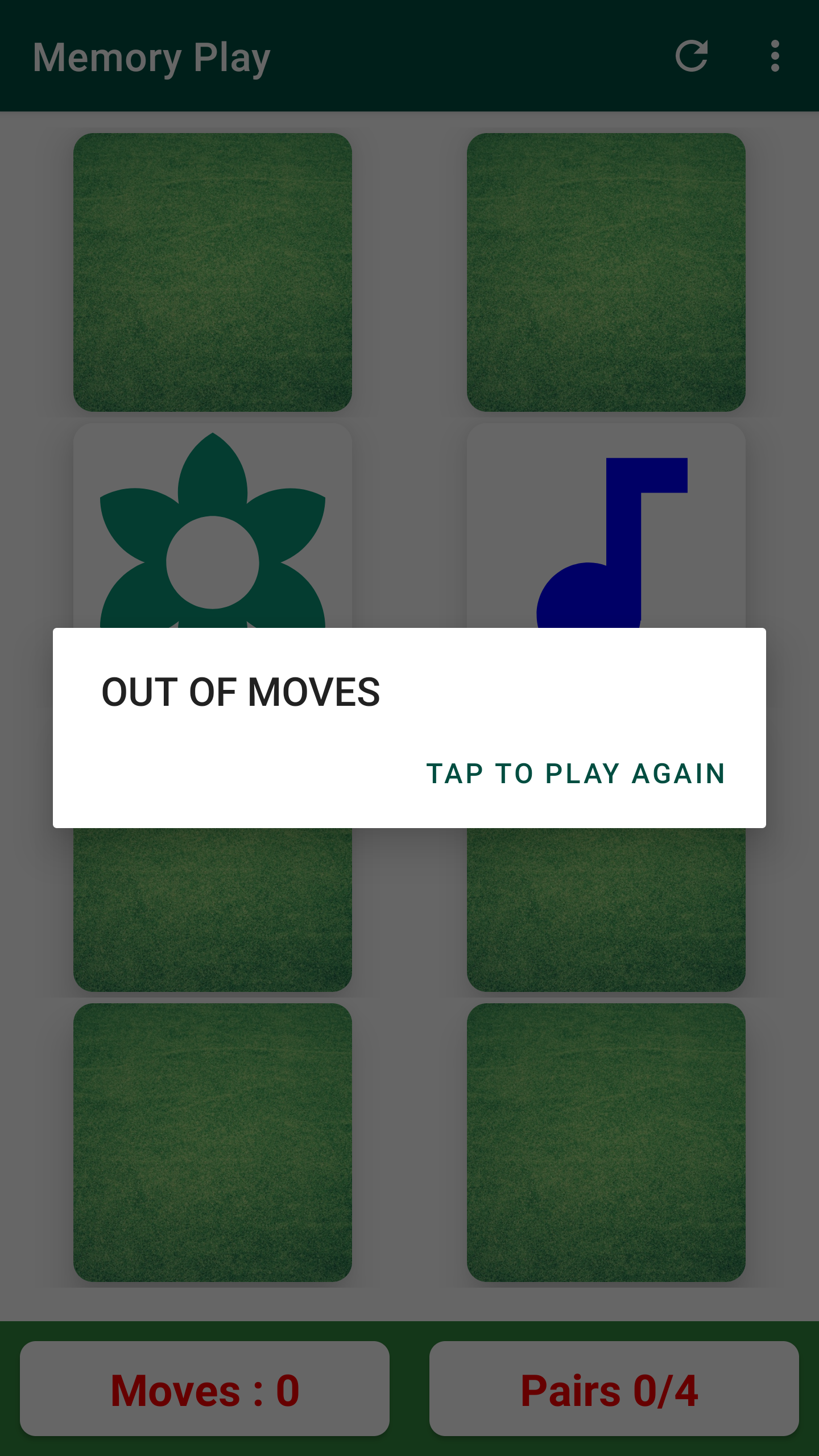 - User can play a default mode by flipping over cards and matching pairs and they can switch to new level after winning