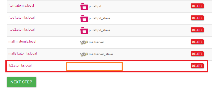 PuppetGUI somehow created a server in database without a role. There is a row in the servers table, but there is not a matching row that references the server in the table roles. Because of that the service is interpreted as a null service resulting in not showing an icon of the role (orange) and you can't seem to be able to delete the service if you press delete.