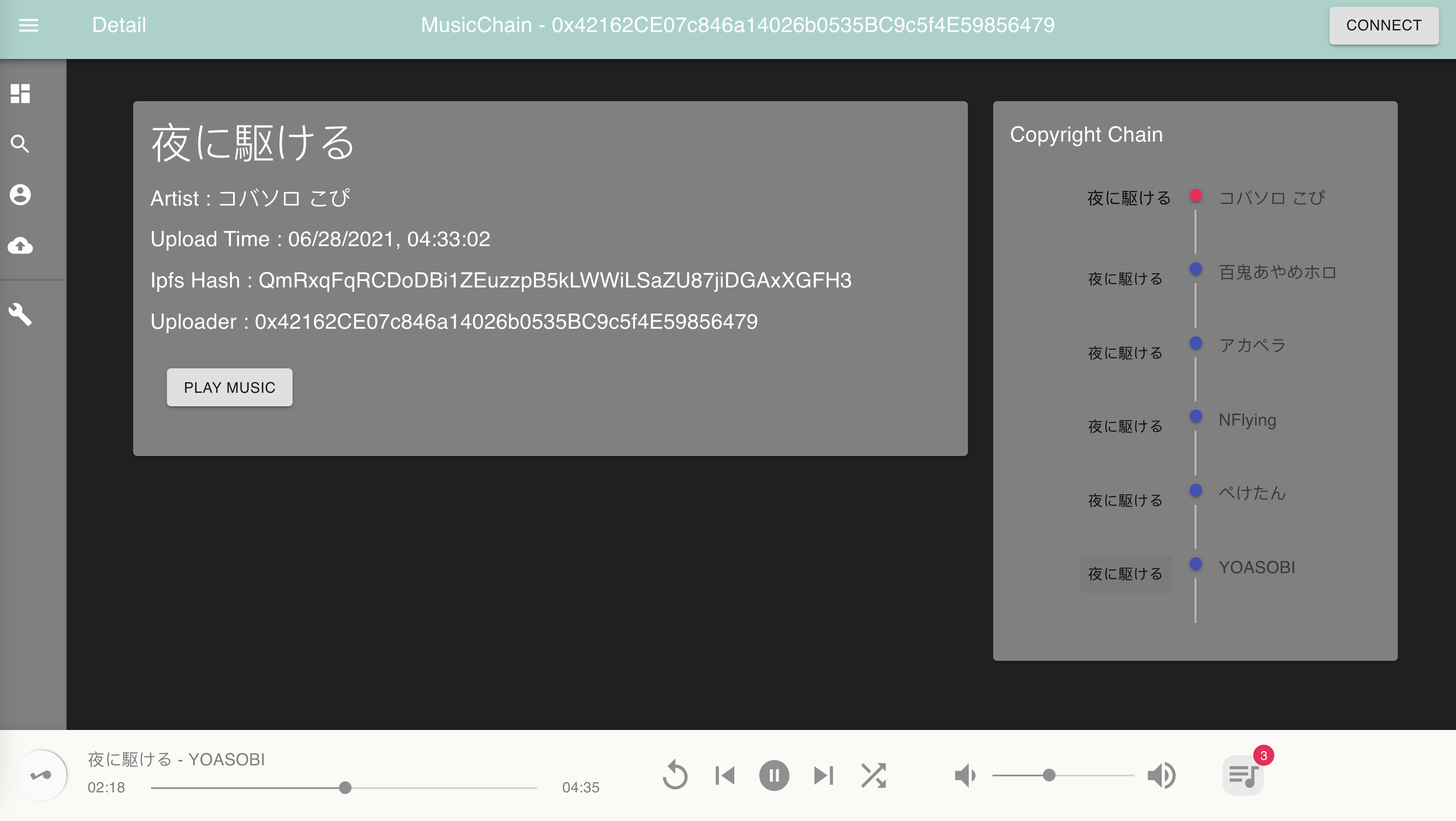 On the right side, it shows the music copyright chain. Notice that user can also click music on the chain, and then they will be redirected to the that music.