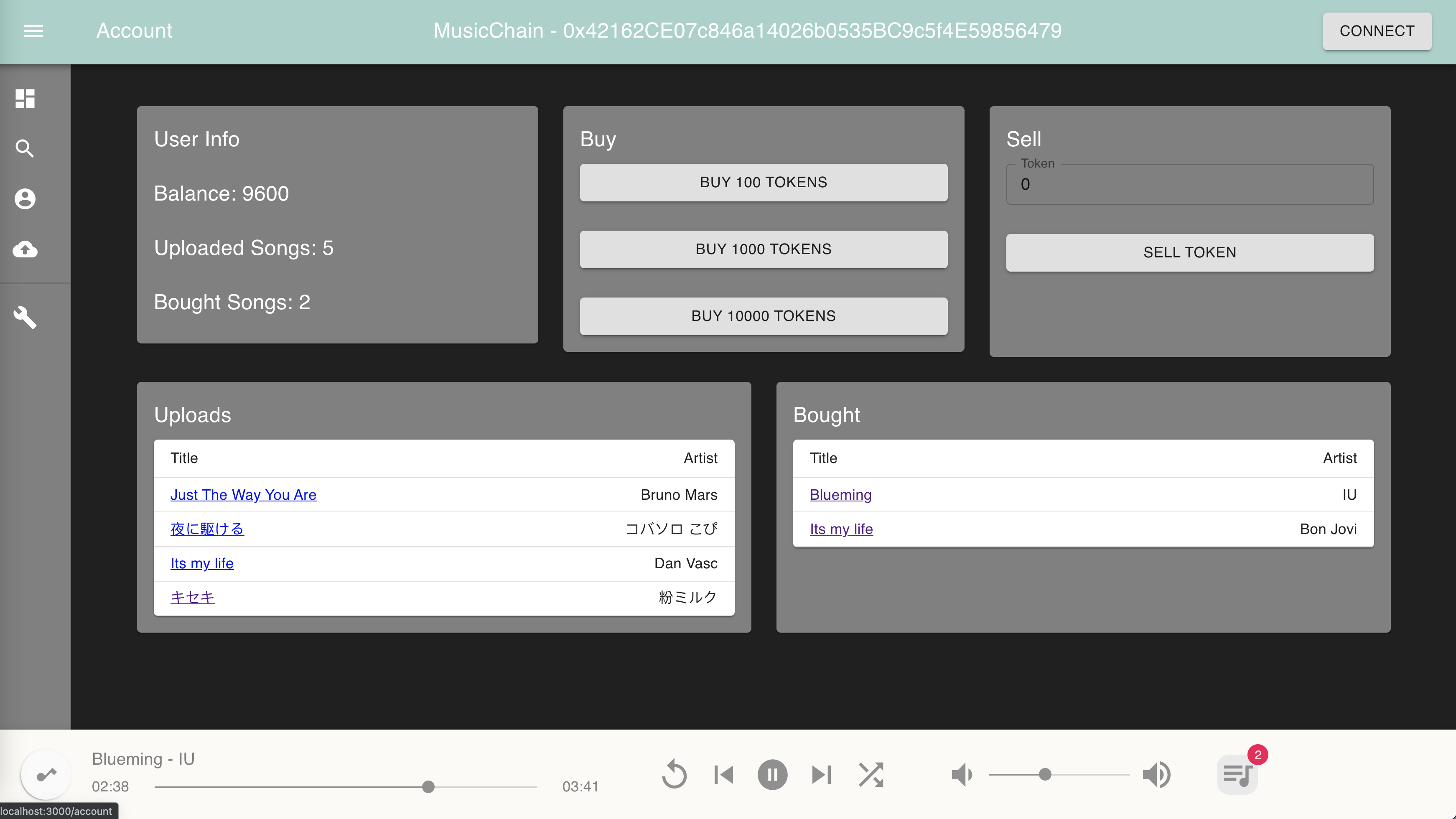 MusicChain is then running at http://localhost:3000/