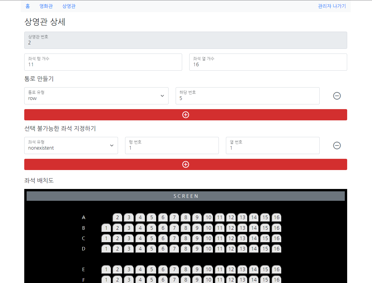 - 동적인 좌석 배치도 - 관리자 모드의 상영관 폼