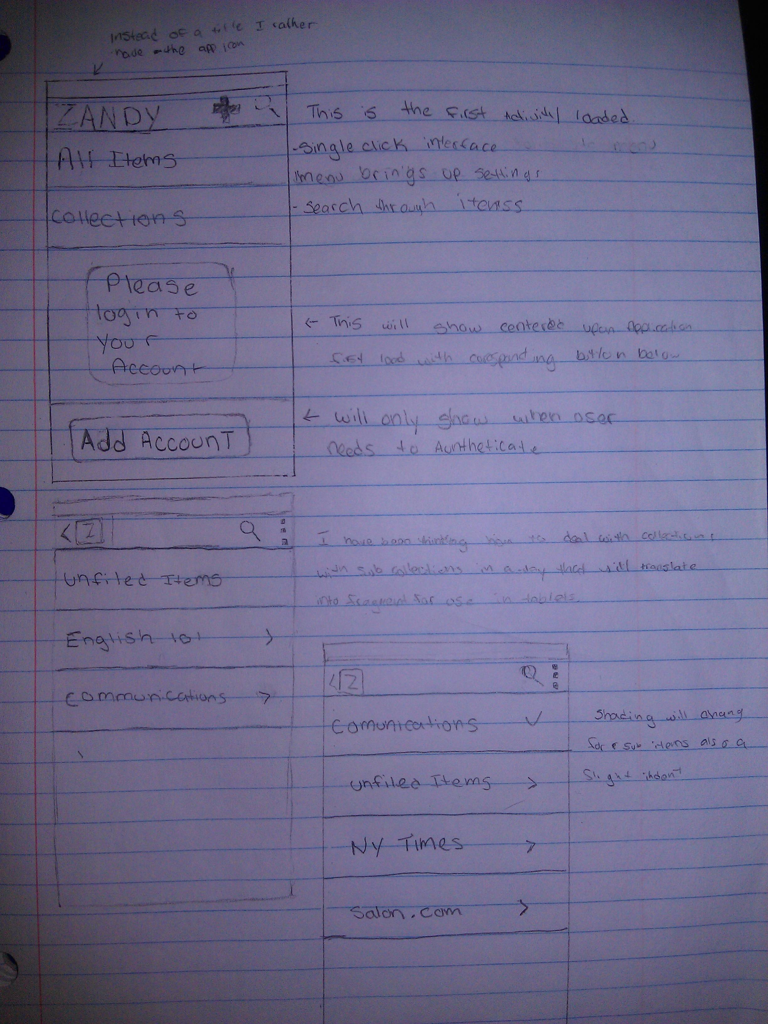 I have been drawing up some UI flows in my down time. This is some of what I came up with.