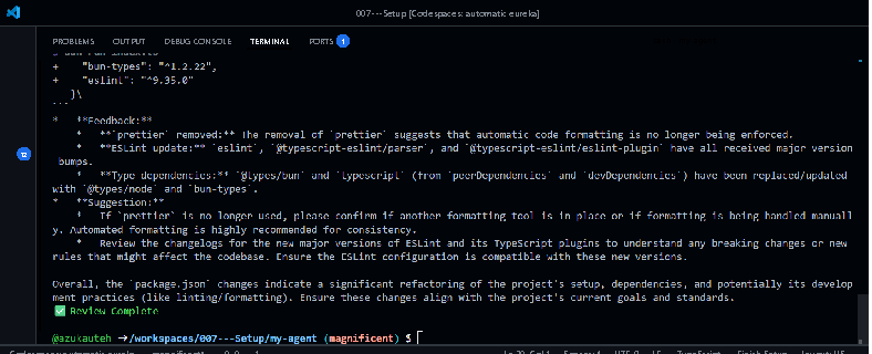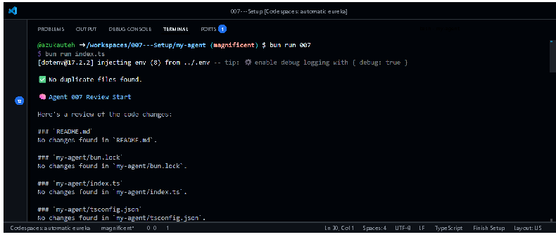 bun run my-agent/index.ts It will stream code review output based on your prompt.