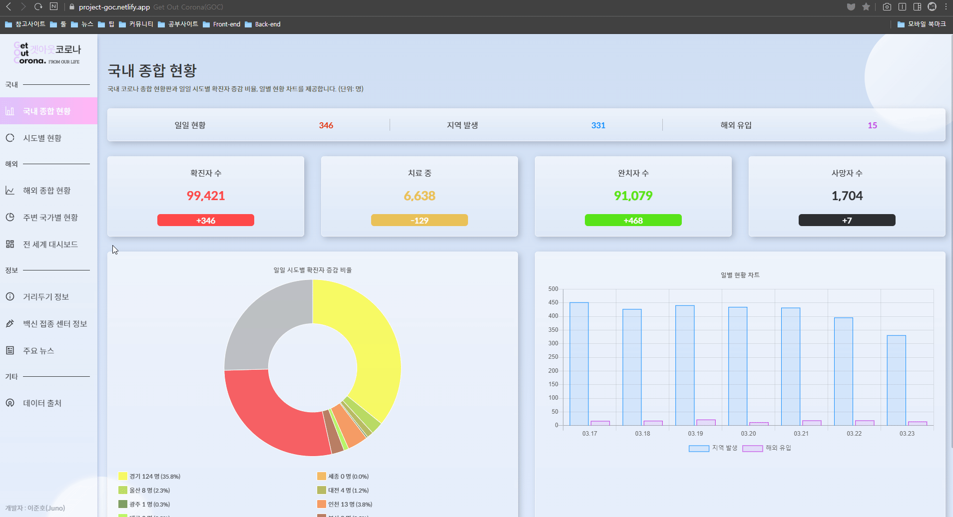국내외 코로나에대한 정보와 데이터를 제공하는 사이트입니다.