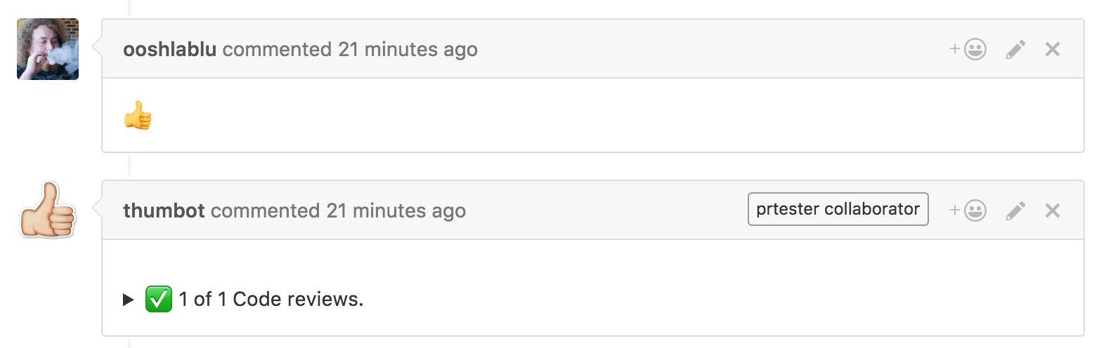 Thumbs was created to help validate and merge pull requests. It was initially developed as a replacement for Bors.
