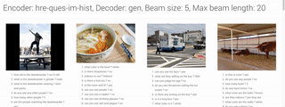 Finally, we can get to training models! All supported encoders are in the encoders/ folder (lf-ques, lf-ques-im, lf-ques-hist, lf-ques-im-hist, hre-ques-hist, hre-ques-im-hist, hrea-ques-im-hist, mn-ques-hist, mn-ques-im-hist, mn-att-ques-im-hist), and decoders in the decoders/ folder (gen and disc).