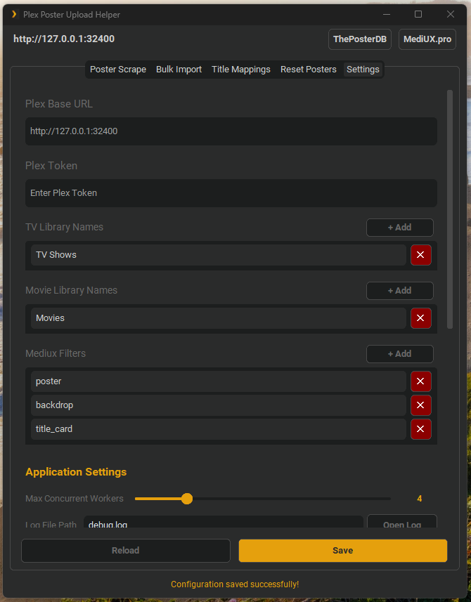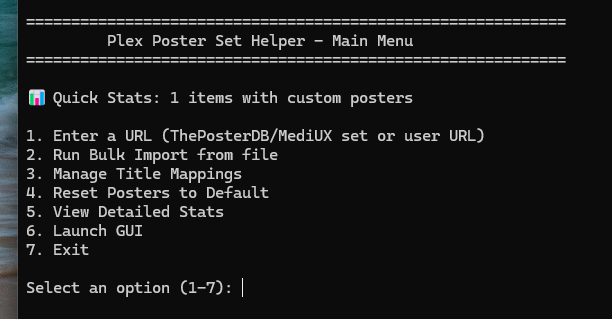 Automatically download and apply poster sets from ThePosterDB and MediUX to your Plex Media Server in seconds. This tool streamlines the process of updating your Plex library with high-quality custom posters, supporting both movies and TV shows with season and episode artwork.