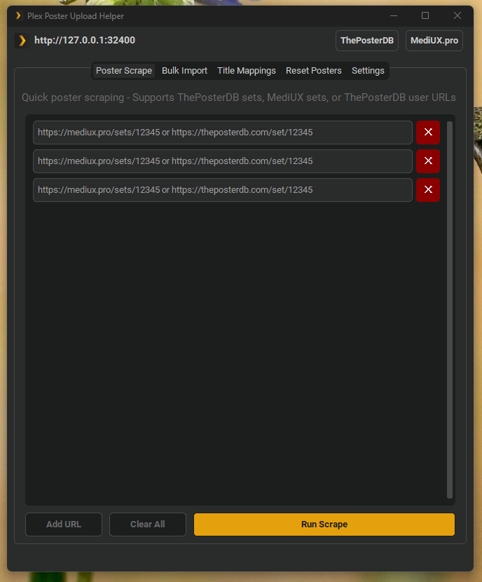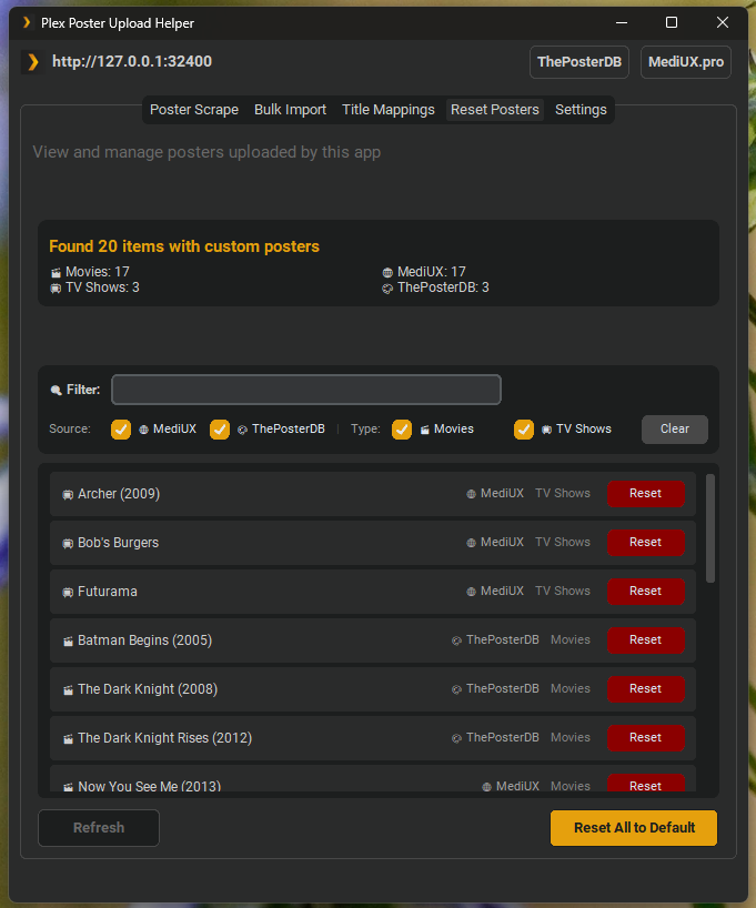 - Source-specific tracking (MediUX vs ThePosterDB)