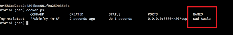 $ angry_nobelAdditionally, per dockers specification they have a "retry" counter that appends a random* number if set to true or a number greater than 0. For example: