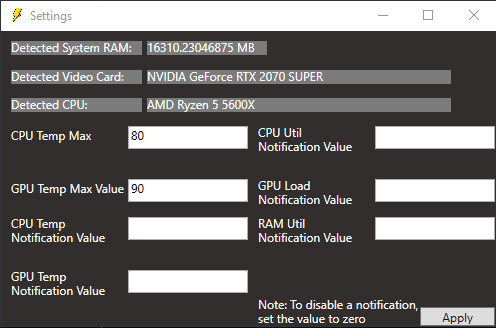 Create a simple, easy to use monitor for hardware without requiring too deep an understanding of hardware which can then also send external notifications to notify a user as to which aspect of their system maxed out.