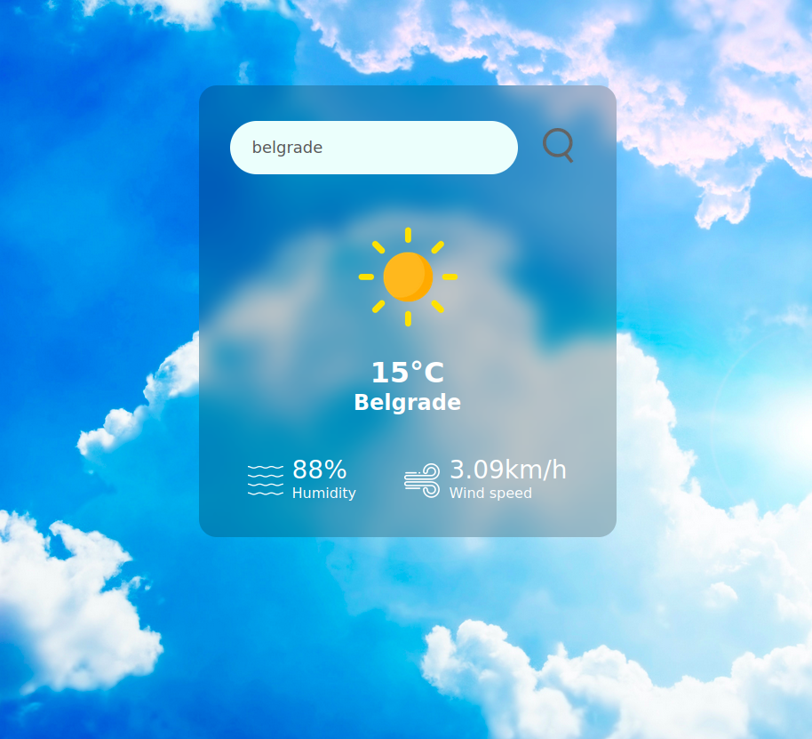 weatherNow Static website displaying weather worldwide Fetching weather data for selected city using https://api.openweathermap.org API and changing background accordingly. Examples: Sunny: Clouds: Rain: