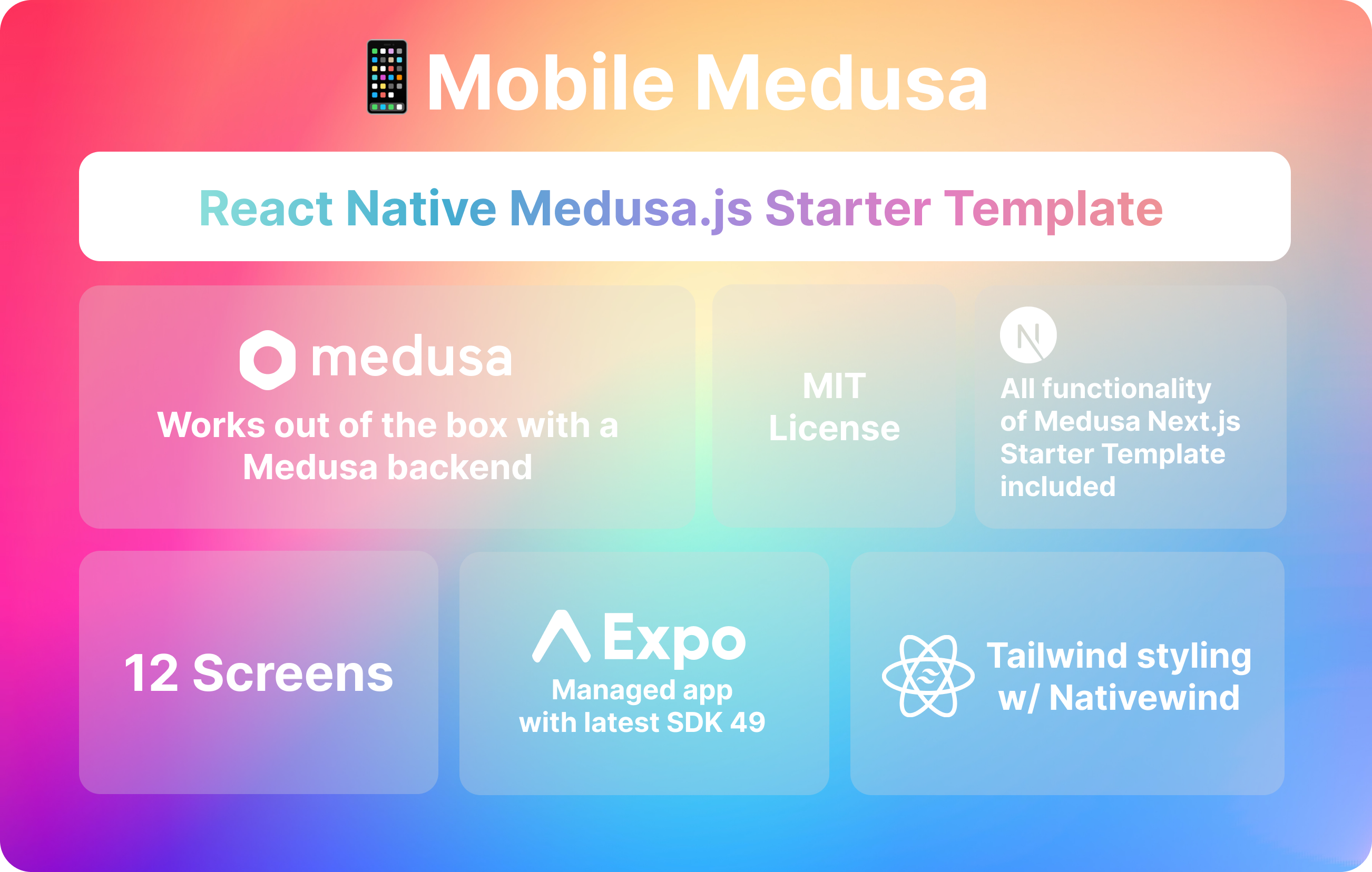 Combine Medusa's modules for your commerce backend with the latest Expo features for a mobile storefront that matches Medusa Next.js starter functionality, look and feel.