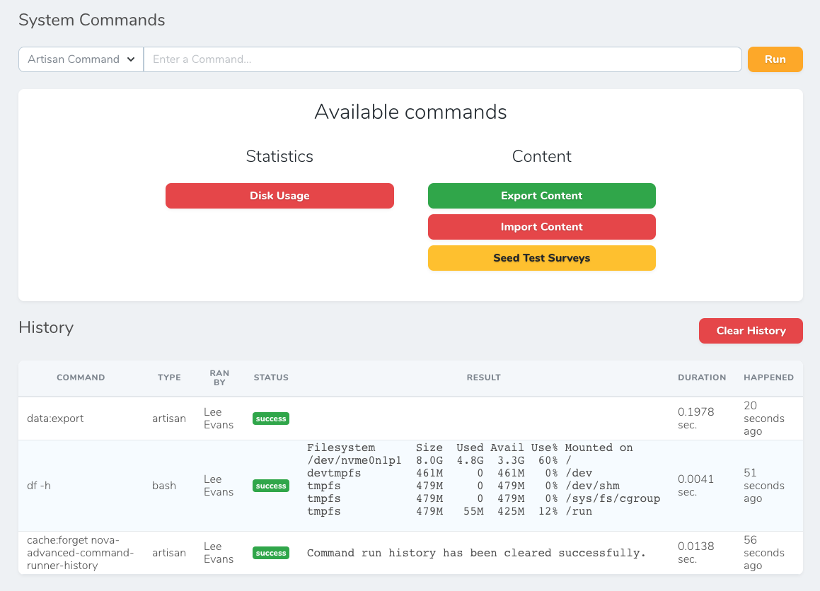 Really useful module. But after running any artisan command the history container is emptied like this:-