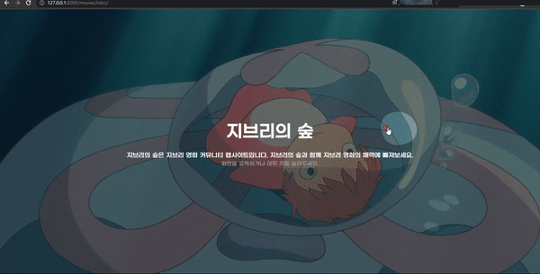 - 하단에는 해당 지브리 캐릭터가 출연하는 영화도 함께 소개해주었고, 클릭시 해당 영화의 상세 페이지로 이동합니다.