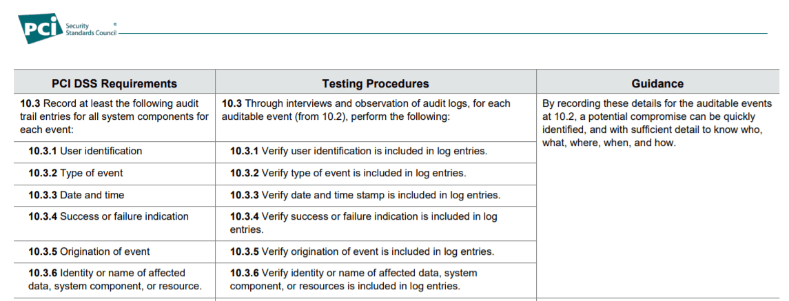Data Security Standard (for Payment Card Industry (PCI), but give a good overview of important information in logs)