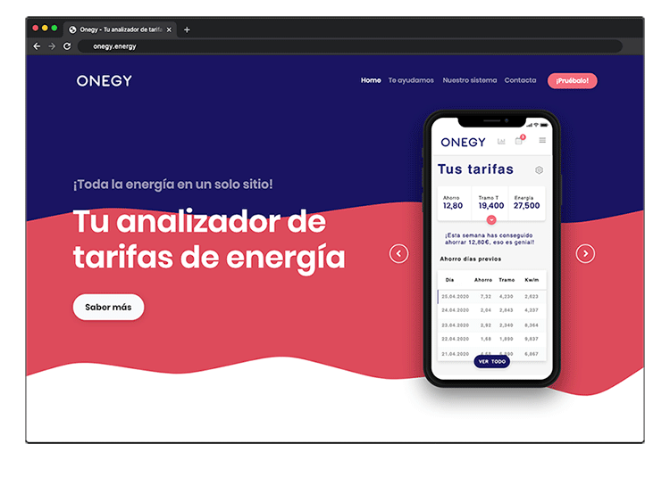 Onegy is an electricity fare analyser that helps you to save an average of 750€ on your electricity bill, no matter which energy operator you have. The solution is Onegy.energy, the app that lets you know what time is cheaper to program the appliances and save up to 50% on our electricity bill.