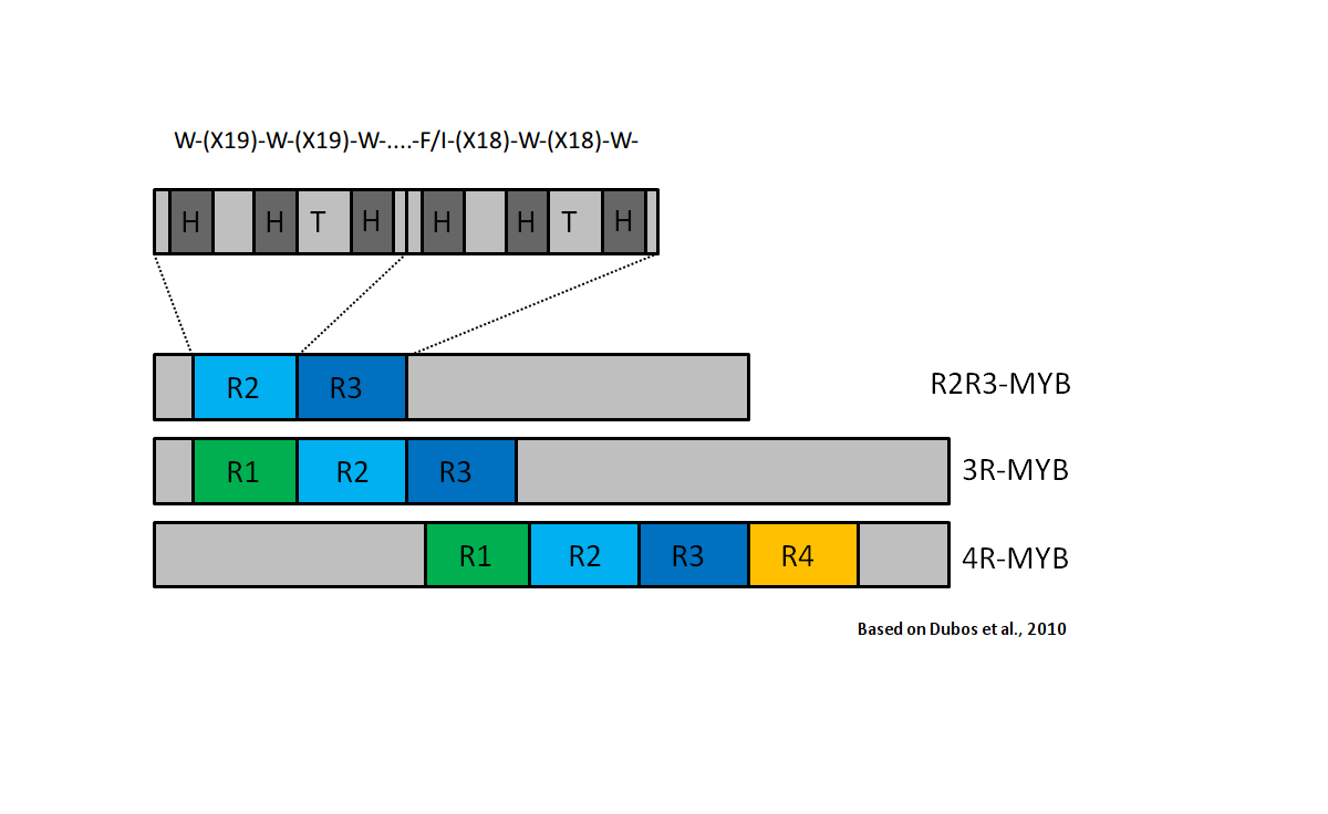 2: Dubos C, Stracke R, Grotewold E, Weisshaar B, Martin C, Lepiniec L (2010). MYB transcription factors in Arabidopsis. Trends in Plant Science 15(10): 573-581. doi: 10.1016/j.tplants.2010.06.005.