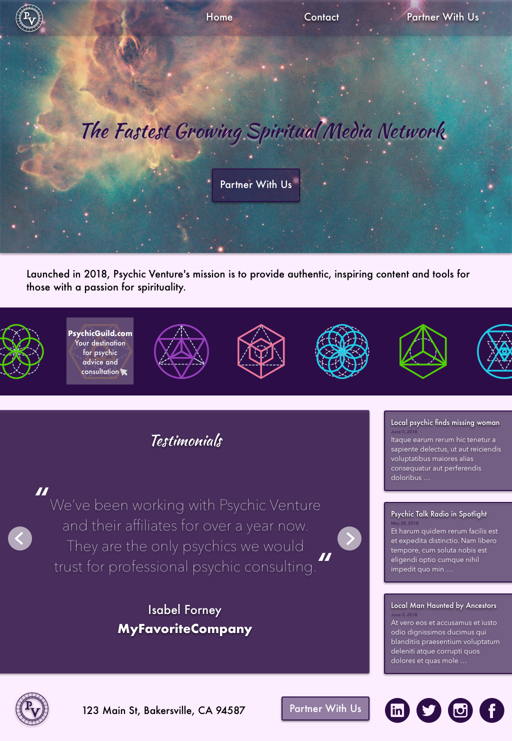 An exercise in doing freelance work for a client company - Psychic Ventures, through a freelance website 99designs.com. The contest link: https://99designs.com/web-design/contests/psychic-ventures-needs-awesome-corporate-website-design-logo-829206/brief