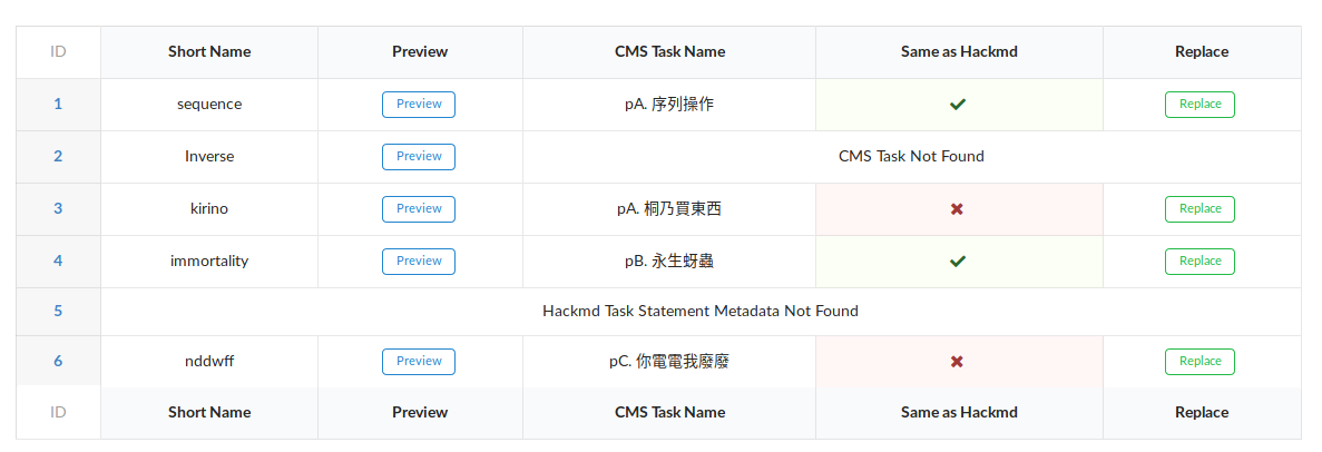 - Same as Hackmd: Indicates whether task statement for this task is the same as that on HackMD.