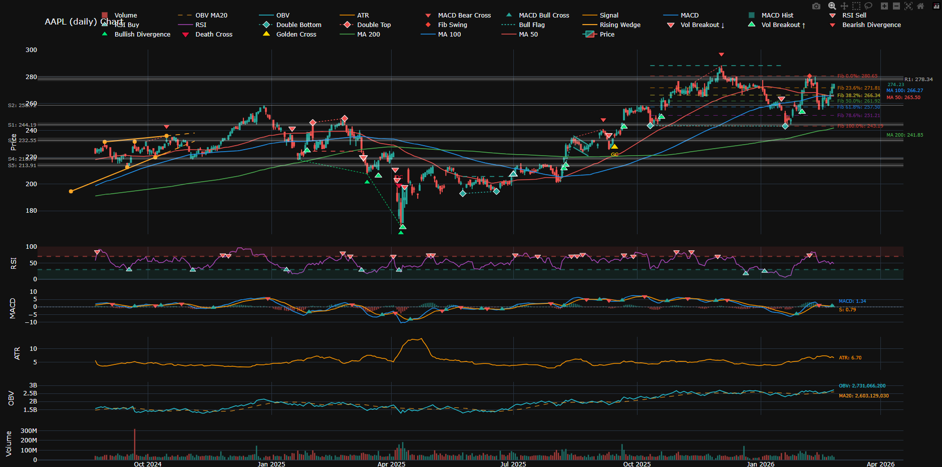 Quick tip: Not sure whether to buy a stock? Generate a chart, take a screenshot, and send it to any LLM (ChatGPT, Claude, Gemini, etc.) with a question like "Based on these technical signals, is it a good time to buy? What are the key levels to watch?" — you'll get an instant analysis without needing to read the chart yourself.