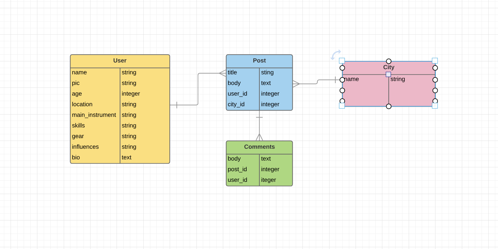 For project 4, I created an app that allows a user to set up a profile on post jam, navigate to the city of their choice, and write posts and reply to posts in the form of comments, opening up the dialouge to start new relationships in the local music world.