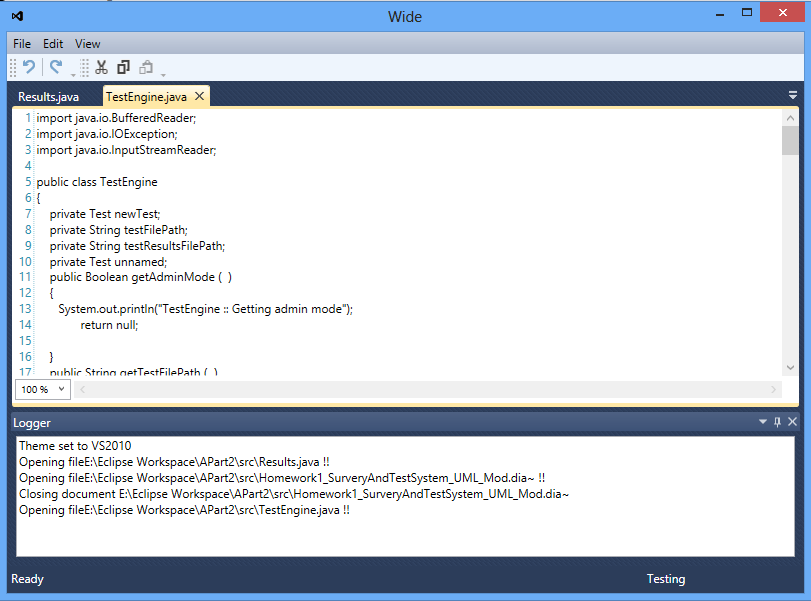- Wide also comes with a logger module as a separate assembly which you can use in you application. (Wide.Tools.Logger)