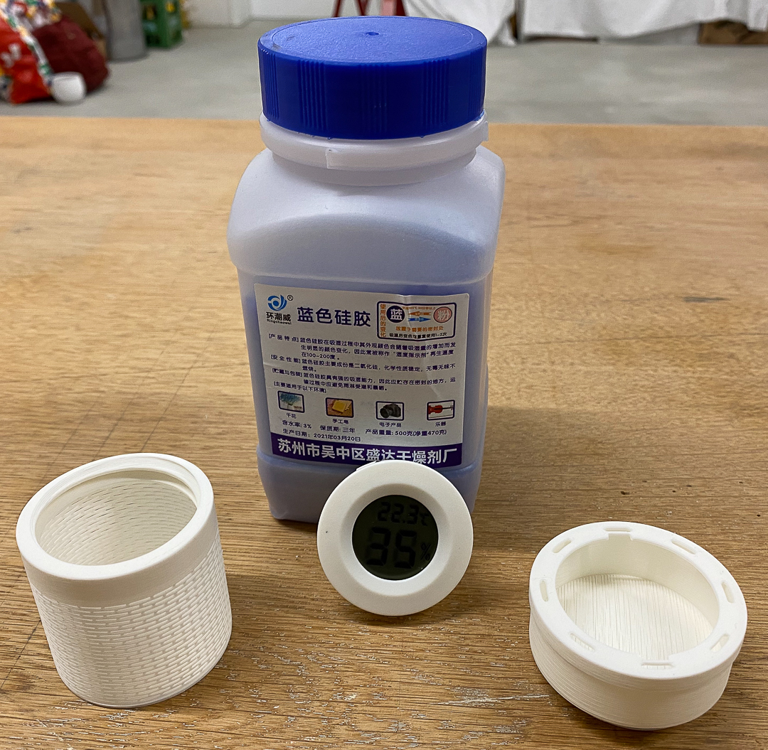 After putting the silica gel holder in you should put it in a bag. I recommend a vacuum bag.