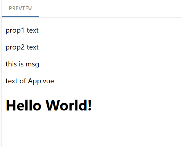 <child prop1="prop1 text" prop2="prop2 text">text of App.vue</child>