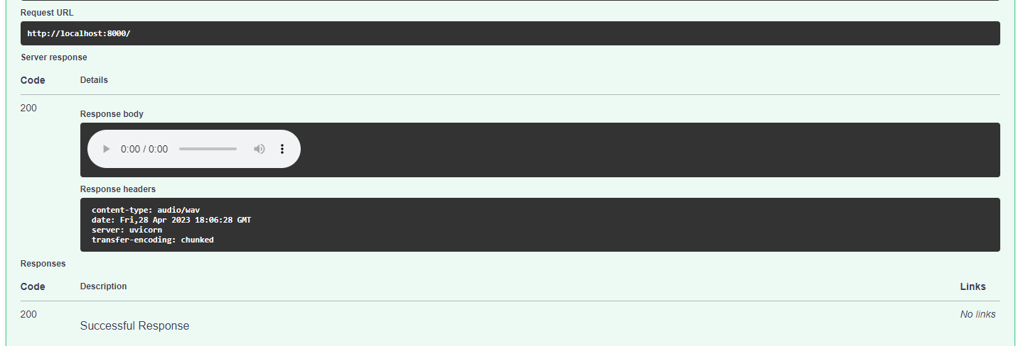 bark_API Dockerized bark API Run below commands: Step 1: docker-compose -f ./docker-compose.yml Step 2: docker-compose -f ./docker-compose.yml up Step 3: visit http://localhost:8000 Output screenshot