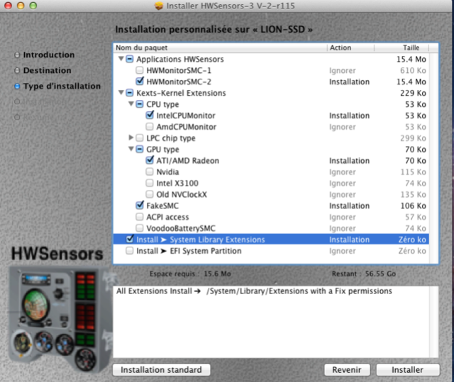 - Select your Install Options: System Library Extensions or EFI System Partition