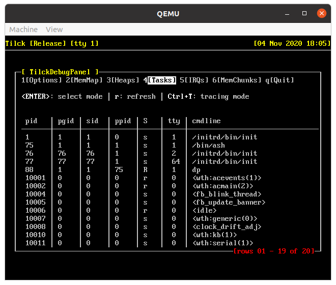 in those cases, a debug panel has been introduced inside Tilck itself. It
