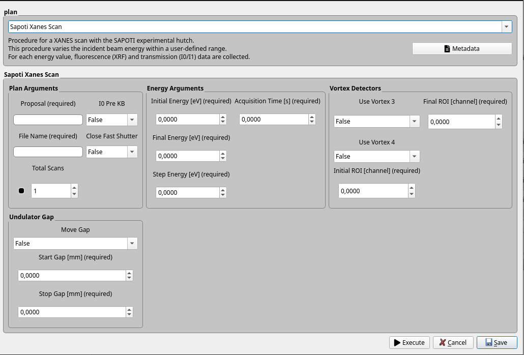 - Addition of a plan to the Queue or immediate execution of it, using a dynamic form that adapts itself using the types provided by the queue server, as shown below.