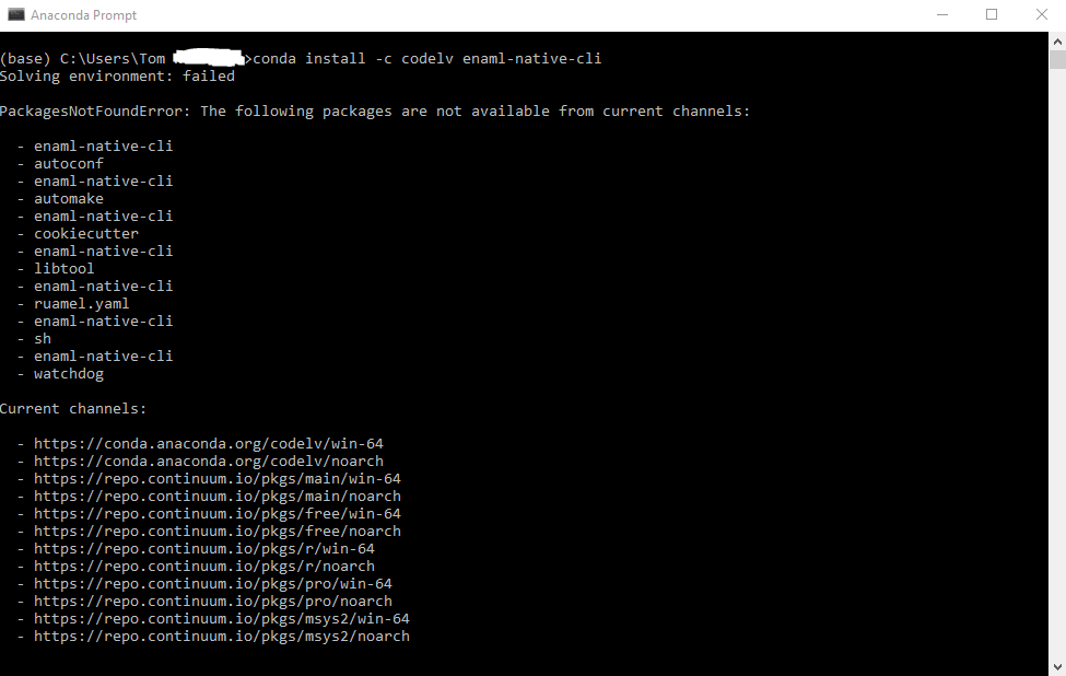 When I try to run the install command it says that the package cannot be found. I installed conda correctly but it won't install. Am I doing something wrong?