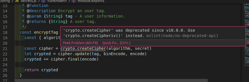 'crypto.createCipher' was deprecated since v10.0.0. #82