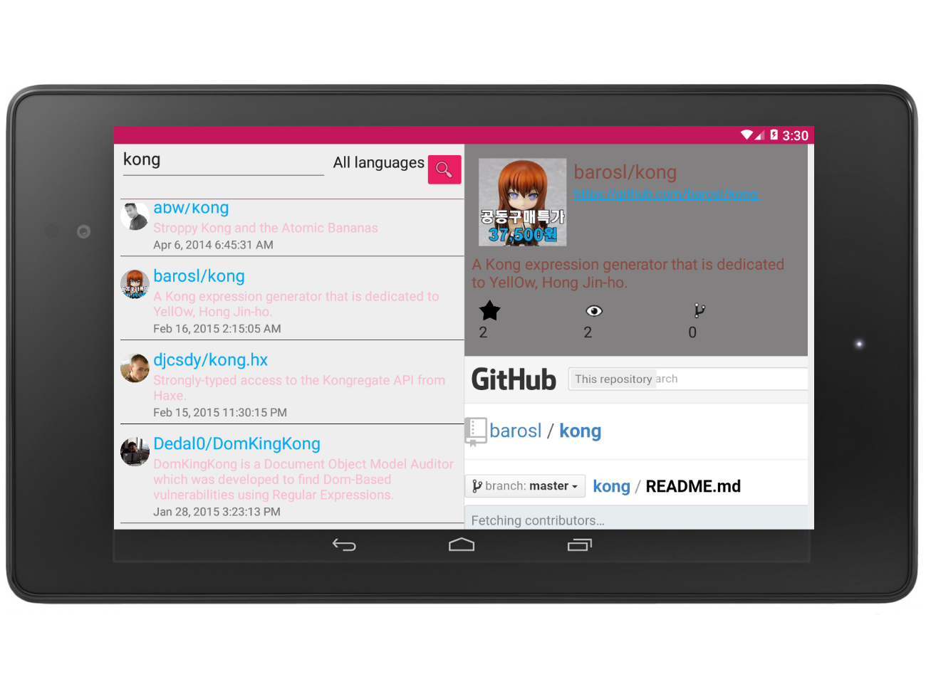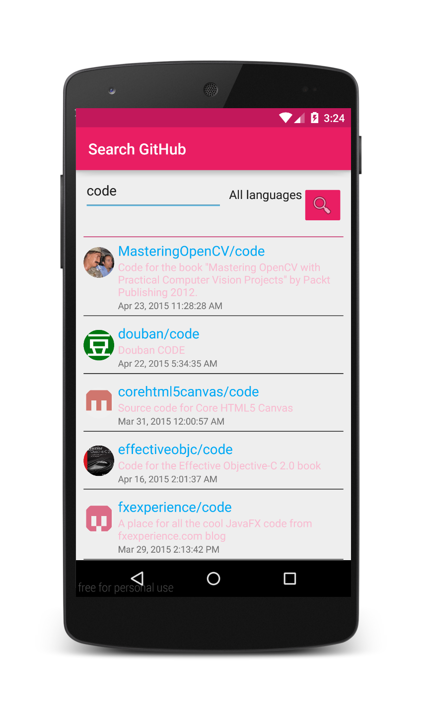 learning android. playing around with android and github api.