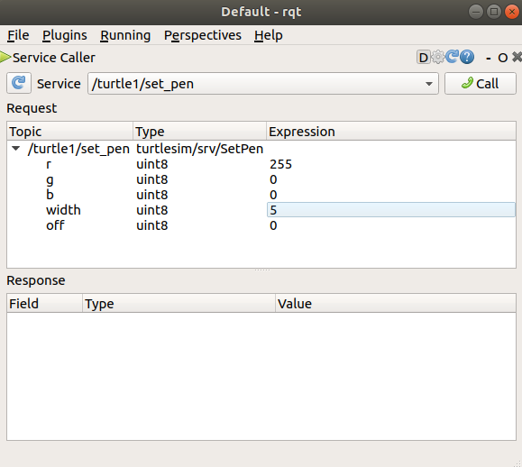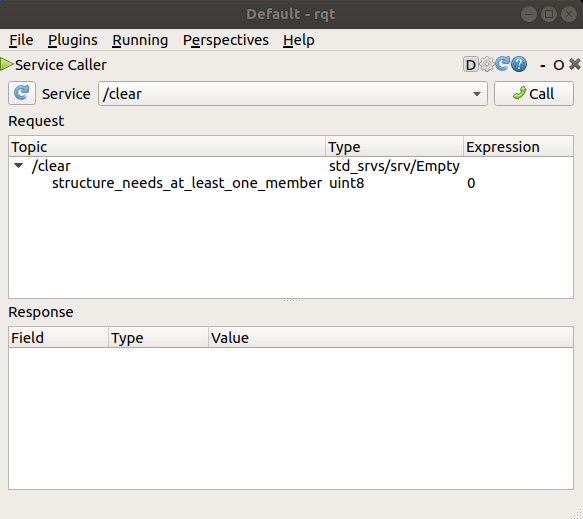 rqt- 상단 메뉴 Plugins > Services > Service Caller 로 이동