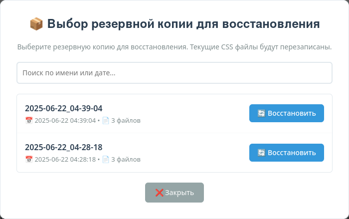 - Создаёт резервную копию оригинальных стилей.