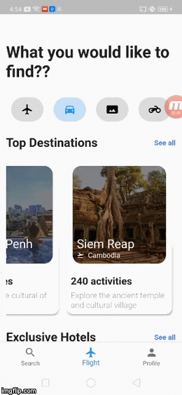 flutter_travel_booking A Flutter Travel Booking app UI concept Design This design UI is inspire from https://dribbble.com/shots/6510521-Travel-App-for-booking-unique-experience App UI HomePage Detail