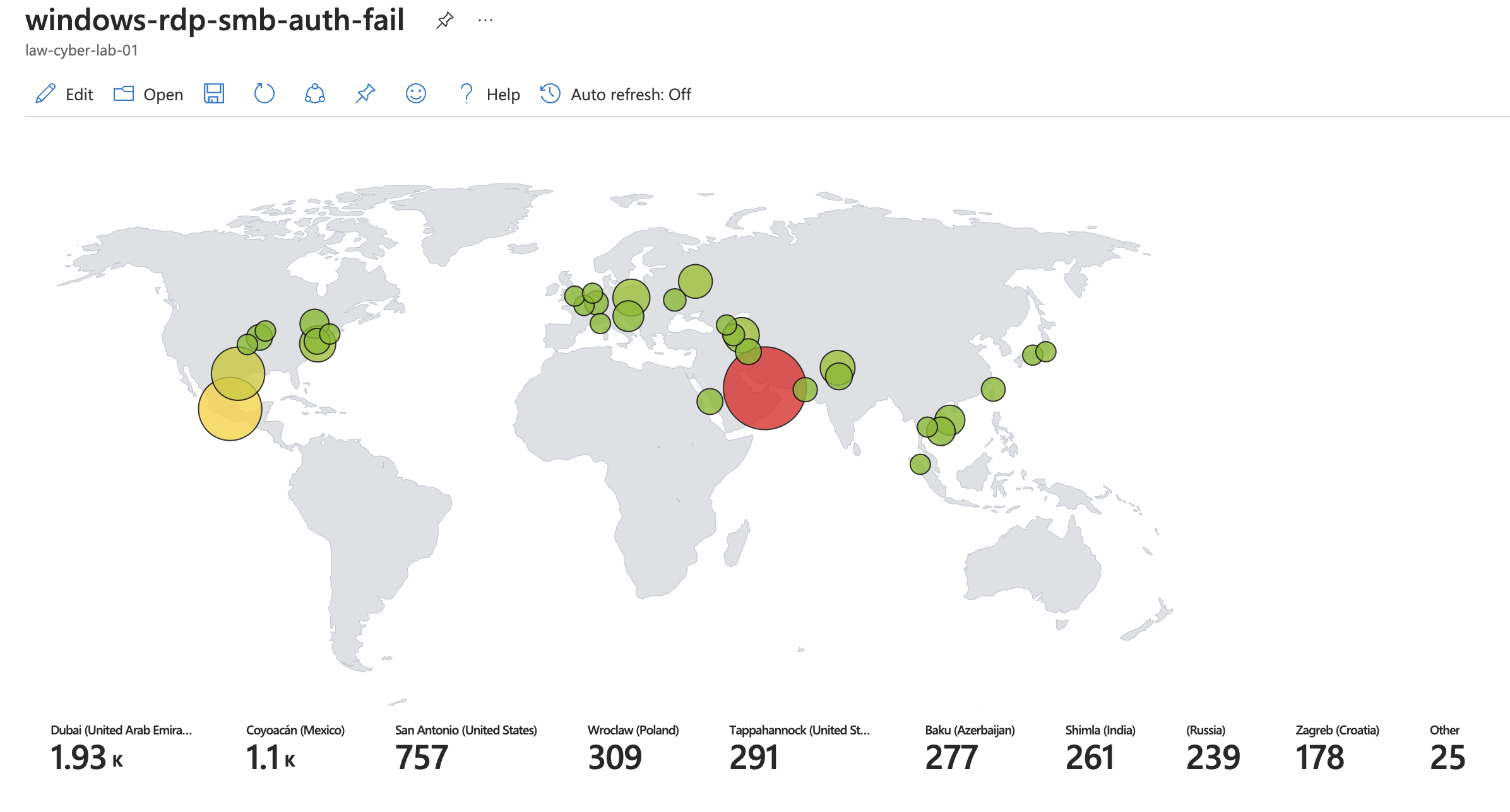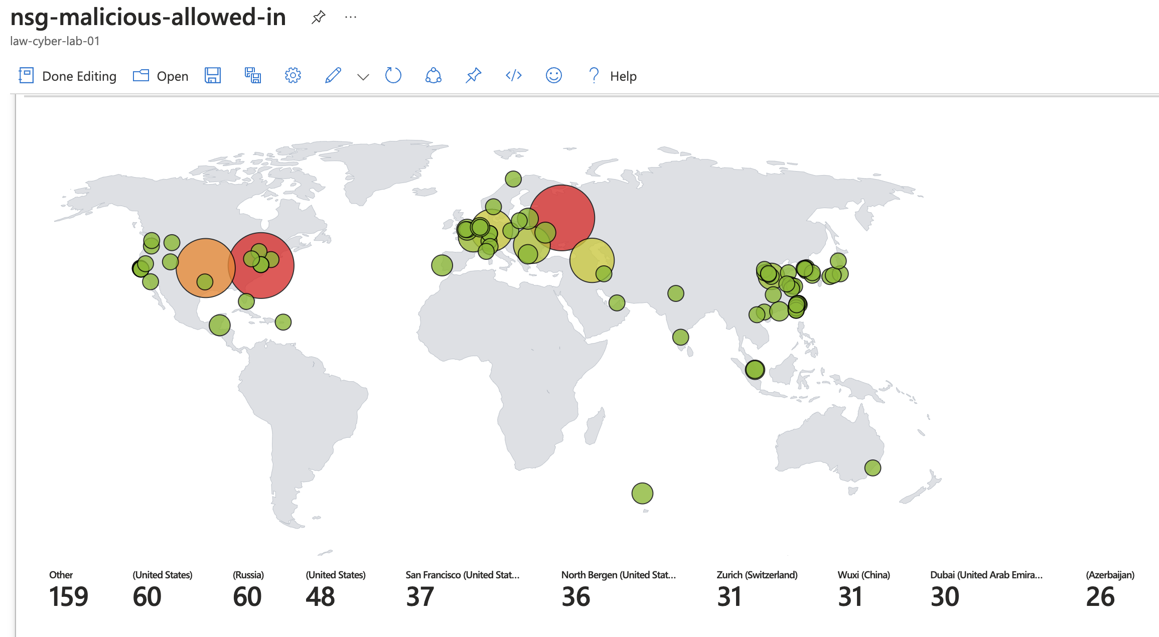 In this project, I build a mini honeynet in Azure and ingest log sources from various resources into a Log Analytics workspace, which is then used by Microsoft Sentinel to build attack maps, trigger alerts, and create incidents. I measured some security metrics in the insecure environment for 24 hours, apply some security controls to harden the environment, measure metrics for another 24 hours, then show the results below. The metrics we will show are:
