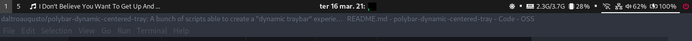 Apenas alguns scripts capazes de criar a experiência de uma "traybar dinâmica" para a Polybar no i3wm, fazendo-a com que se comporte tipo um módulo.