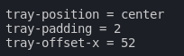 polybar_trayoffsetna posição em que desejar, no arquivo de configuração da Polybar: