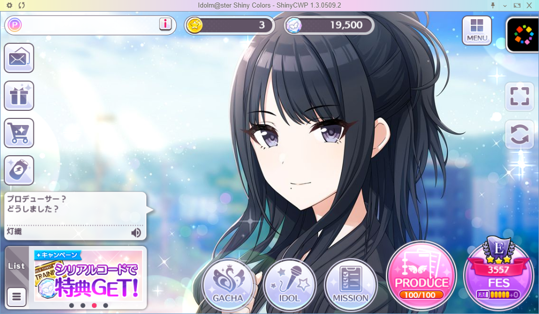 ShinyCWP is a fanmade desktop client (which is more like a simplified browser) that will let you play ShinyColors with some ease. The project is quite new, and we're still working to deploy more features. Please help us suggesting features you think would be cool or reporting bugs.