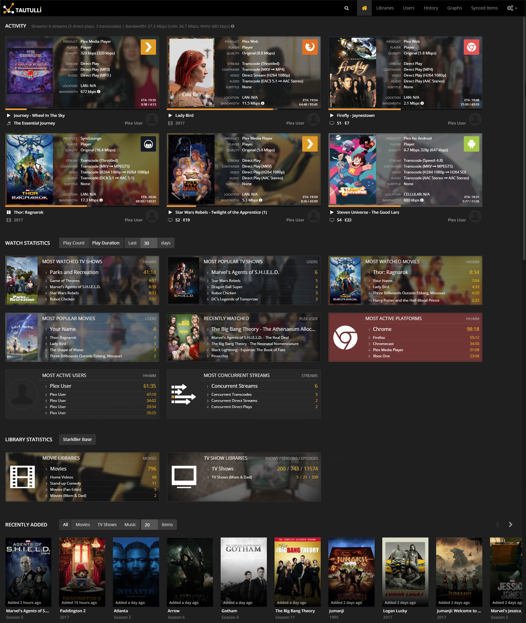 - Monitor current Plex Media Server activity.