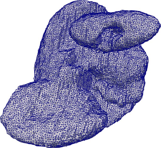 pygalmesh remesh-surface lion-head.off out.vtu -e 0.025 -a 25 -s 0.1 -d 0.001