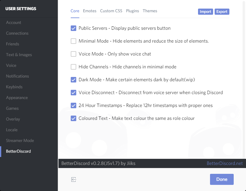 Plugins BetterDiscord comes with a JavaScript plugin loader for loading your own or downloading plugins made by others.