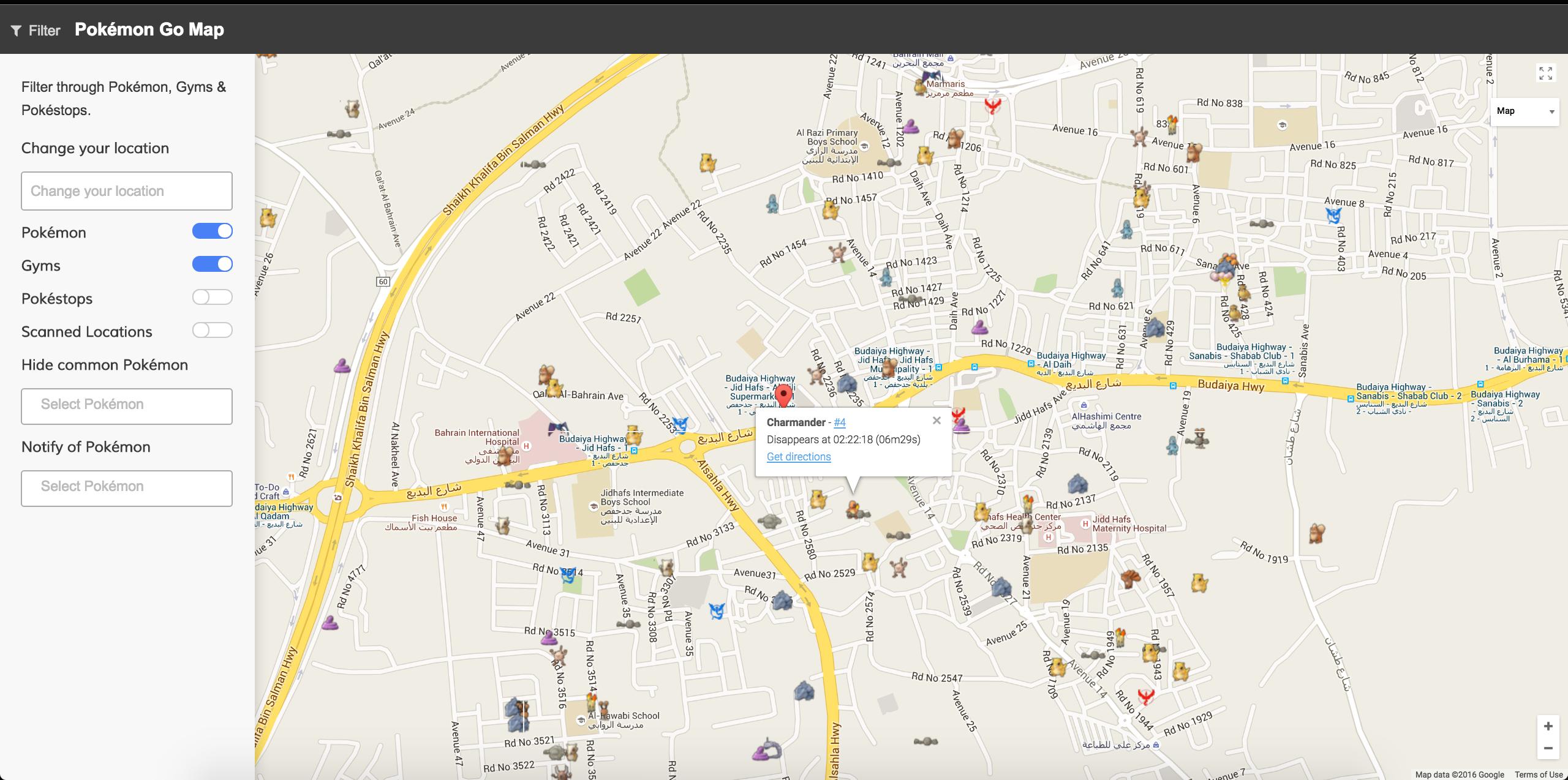 Live visualization of all the pokemon (with option to show gyms and pokestops) in your area. This is a proof of concept that we can load all the pokemon visible nearby given a location. Currently runs on a Flask server displaying a Google Maps with markers on it.