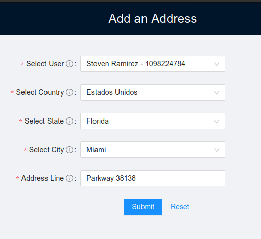 - Addresses: You can add to a specific user a shipping address.