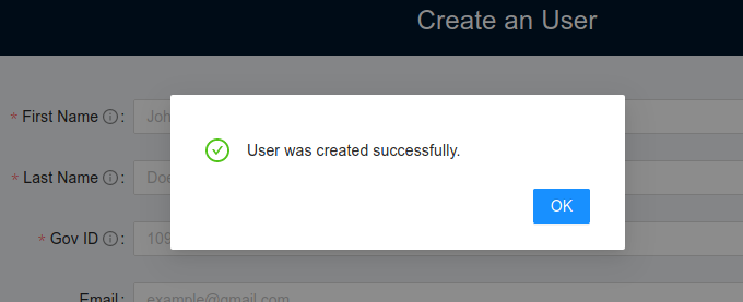 If you confirm the data, a successfully message will show up.